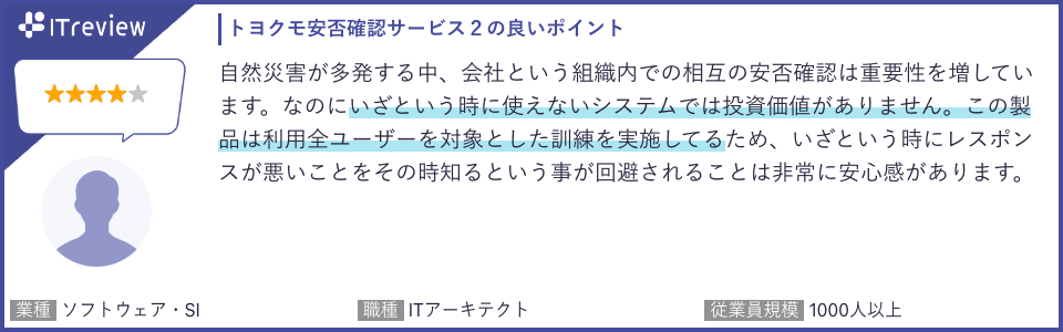成長する市場において安否確認サービス2がこれからも”選ばれる”サービスであり続けられるよう、今後も改良を重ね、お客様が被災した際に初動対応や緊急対応でお役立ていただけるよう貢献してまいります。